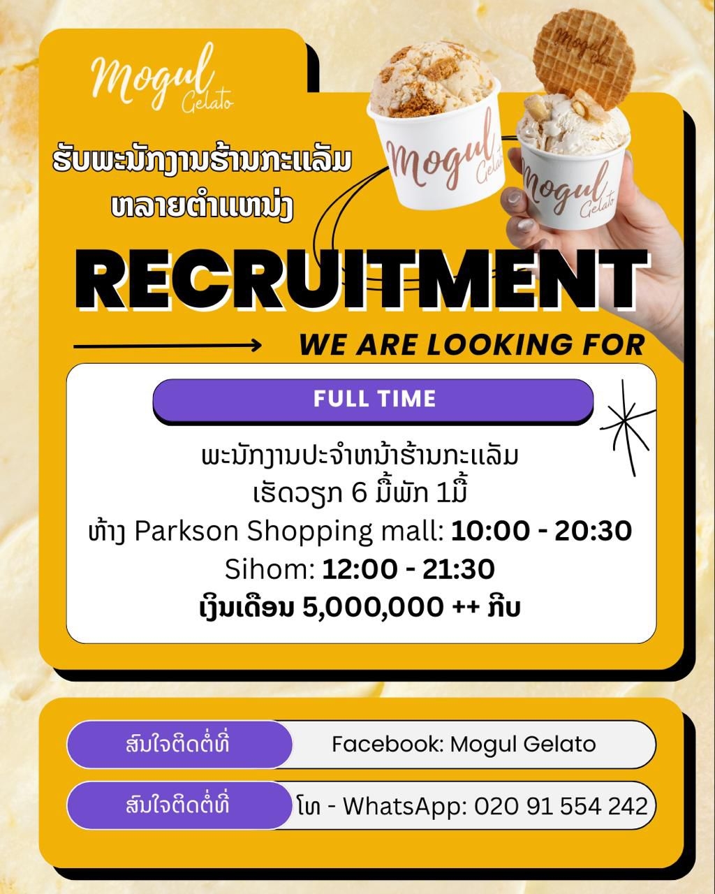 ພະນັກງານຂາຍກະແລ້ມ Full Time