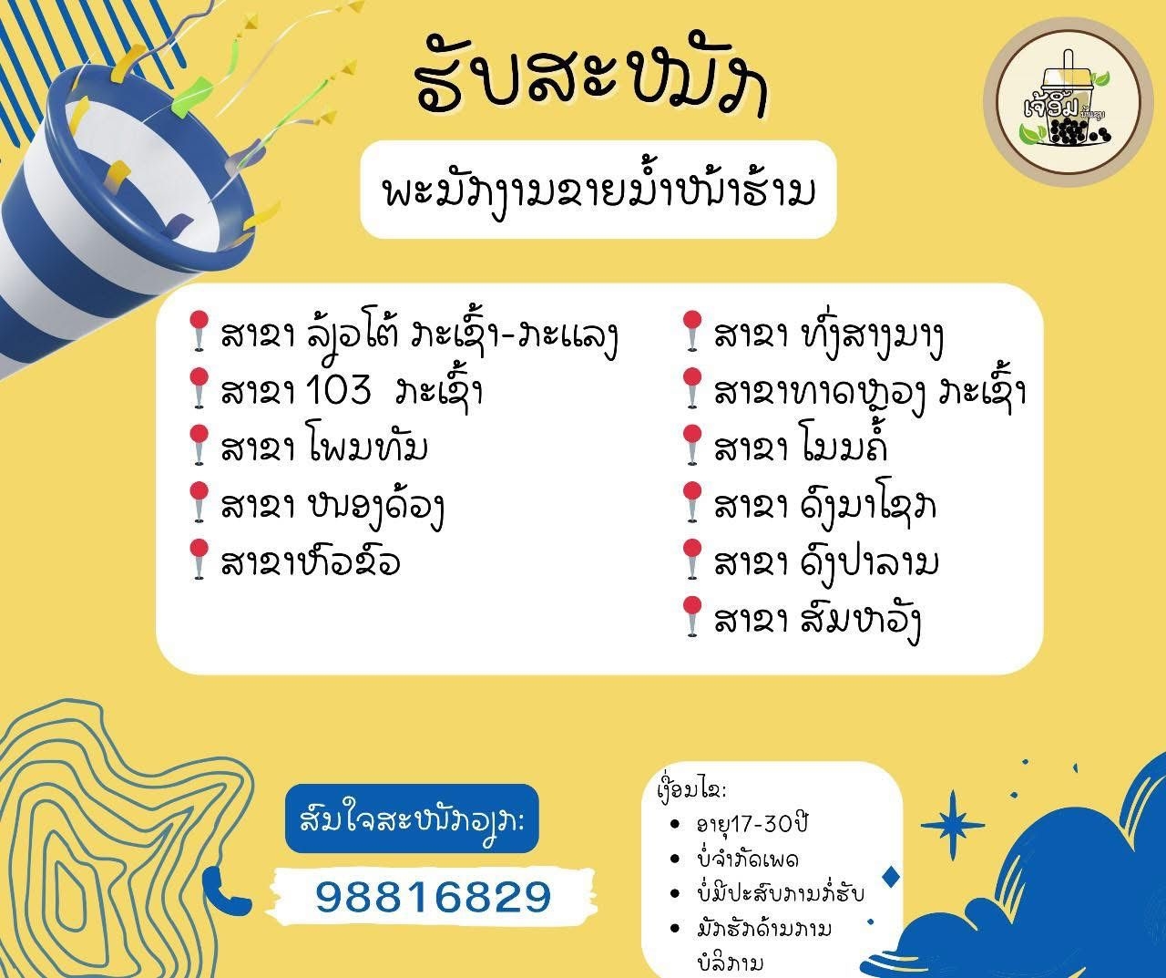 ພະນັກງານຂາຍນ້ຳໜ້າຮ້ານ (ຫຼາຍຕຳແໜ່ງ ແລະ ຫຼາຍສາຂາ)