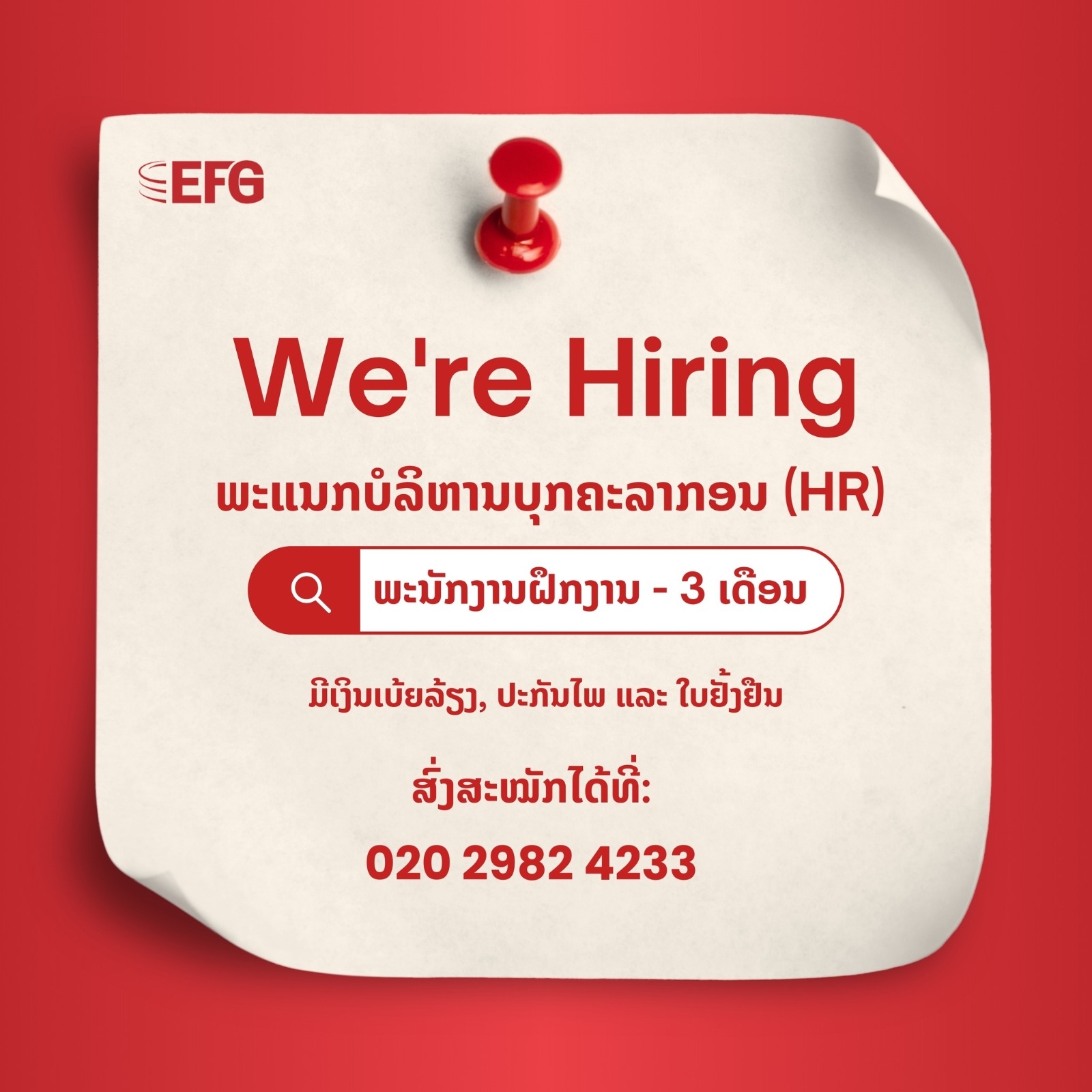 ພະນັກງານຝຶກງານ - 3ເດືອນ (ພະແນກບໍລິຫານບຸກຄະລາກອນ HR)