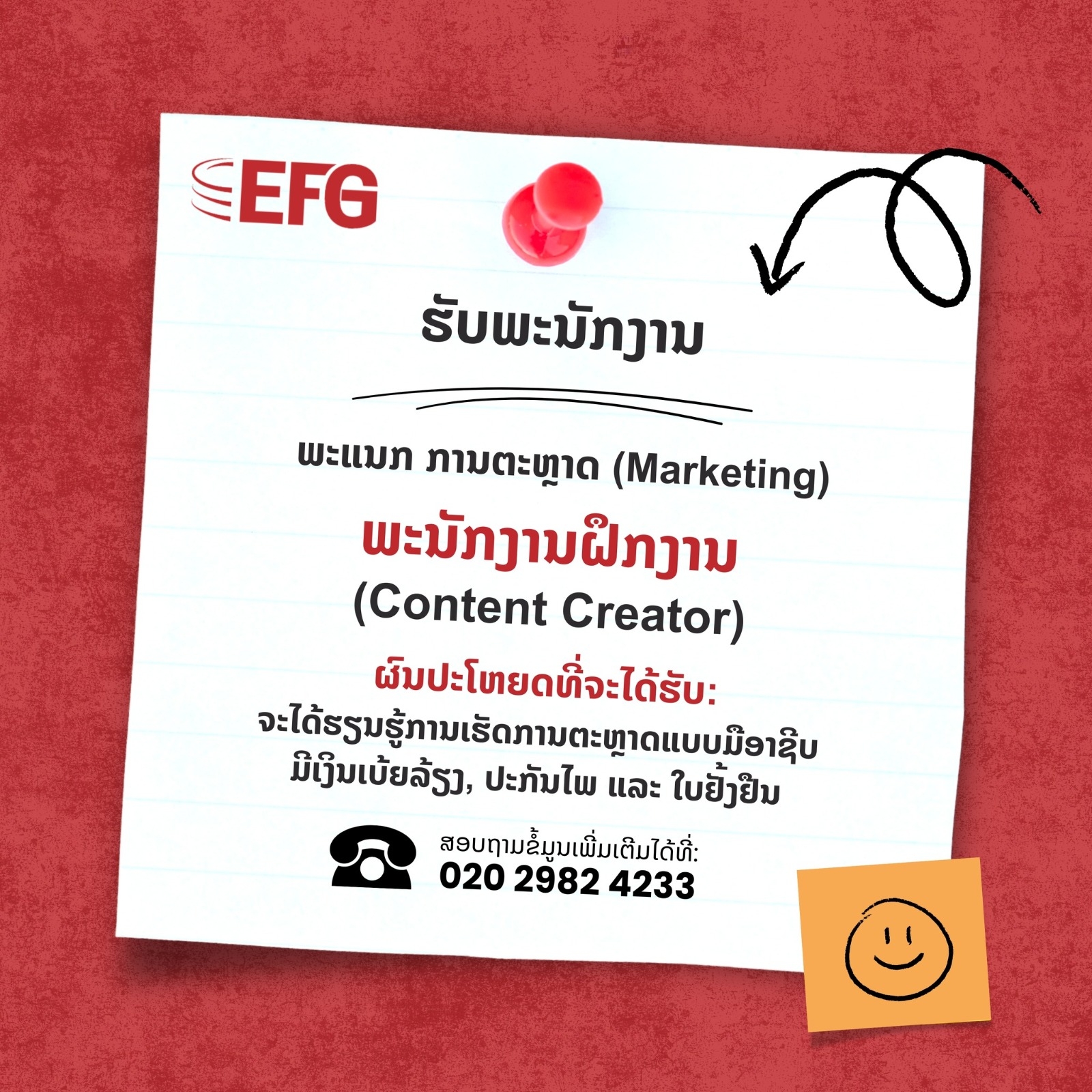 ພະນັກງານຝຶກງານ - 3ເດືອນ (ພະແນກການຕະຫຼາດ Content Creator)