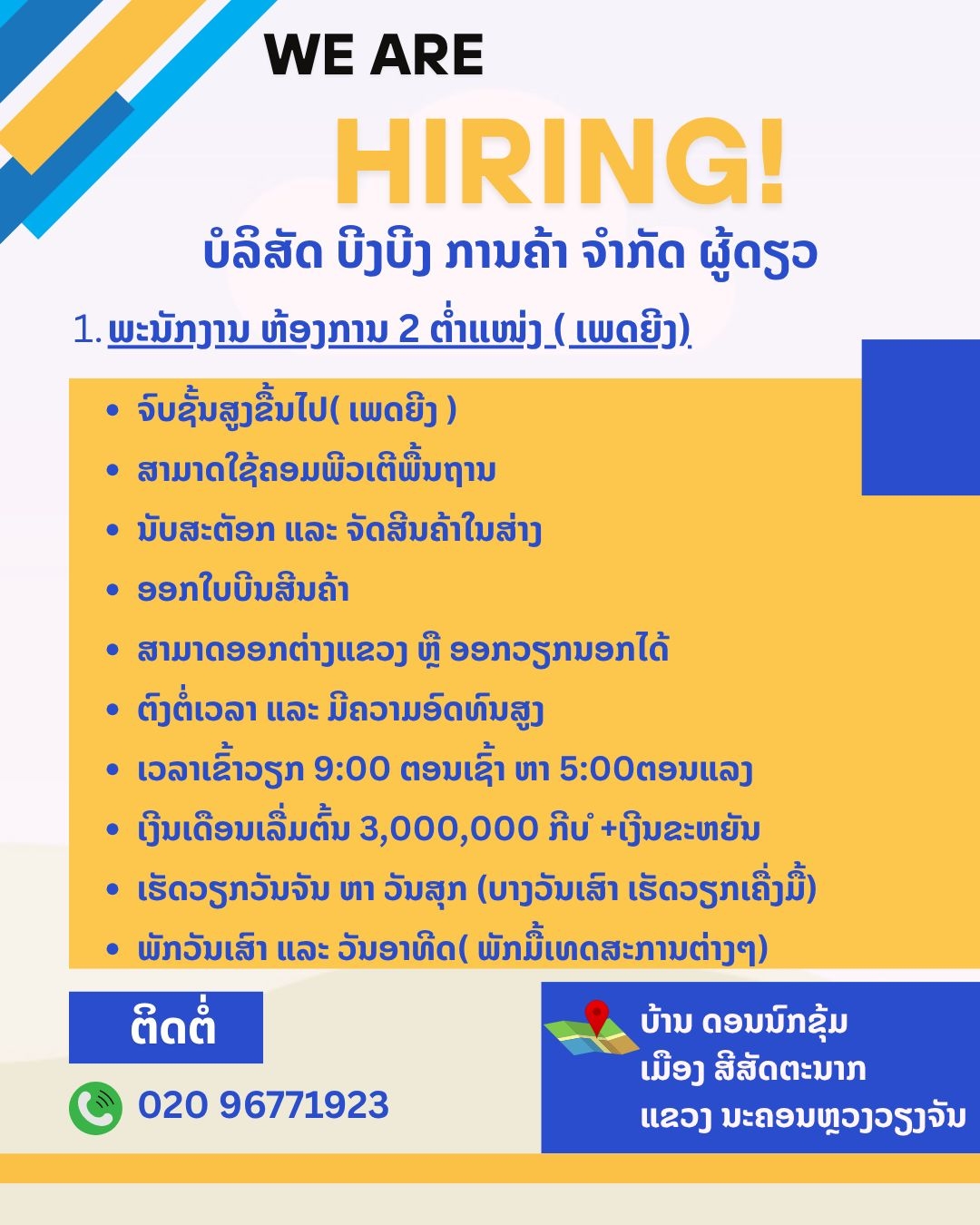 ບໍລິສັດ ບີງບີງ ການຄ້າ ຈຳກັດ ຜູ້ດຽວ