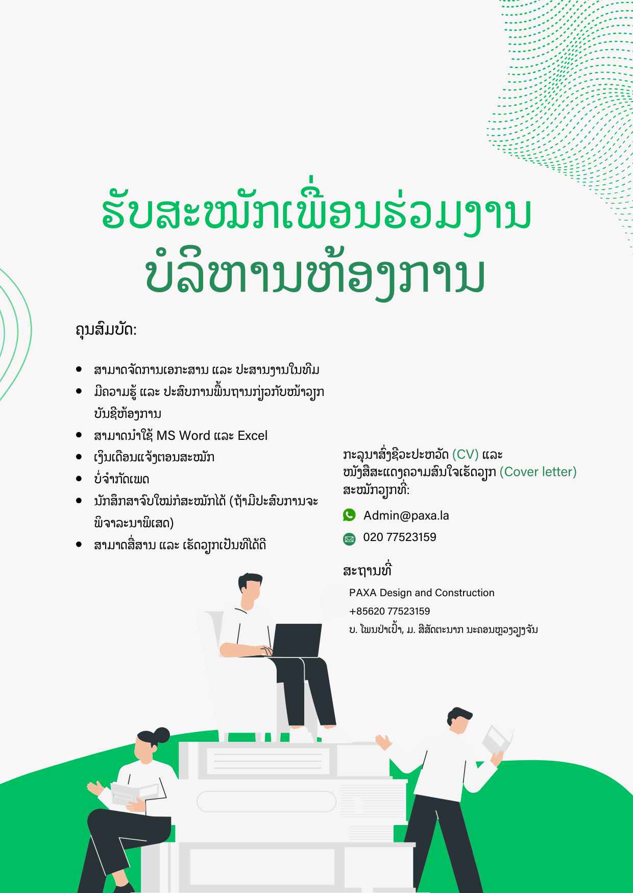 ເປີດຮັບສະໝັກ ບໍລິຫານຫ້ອງການ 1 ຕຳແໜ່ງ