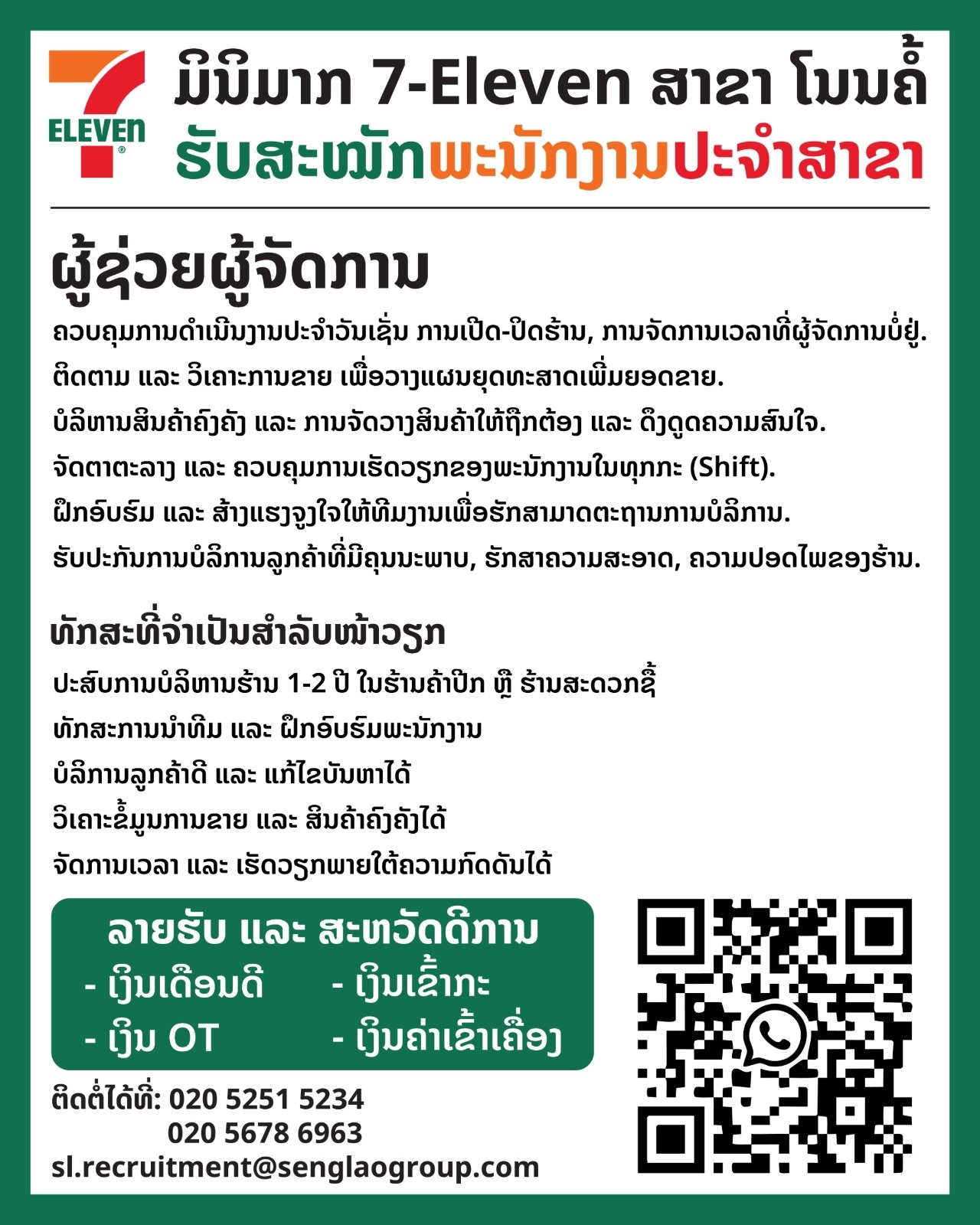 ຜູ້ຊ່ວຍຜູ້ຈັດການ (7-Eleven ສາຂາ ໂນນຄໍ້)