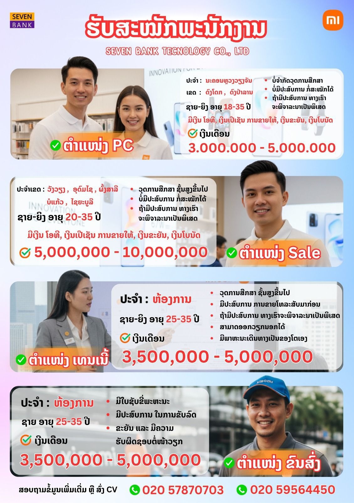 ພະນັກງານ Sale (ປະຈຳເຂດ ວັງວຽງ, ອຸດົມໄຊ, ຜົ້ງສາລີ, ບໍ່ແກ້ວ, ໄຊຍະບູລີ)